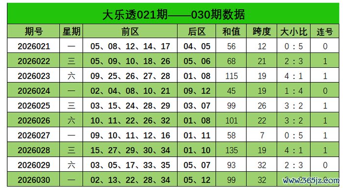 大乐透第2026030期出奖号统计:前区02、13、22、28、34,后区05、12。和值99,跨度32,大小比3:2,未开出连号。